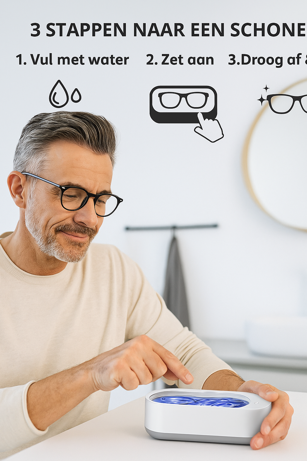 👓 CrystalWave Luxe – Draadloze Ultrasone Brillenreiniger