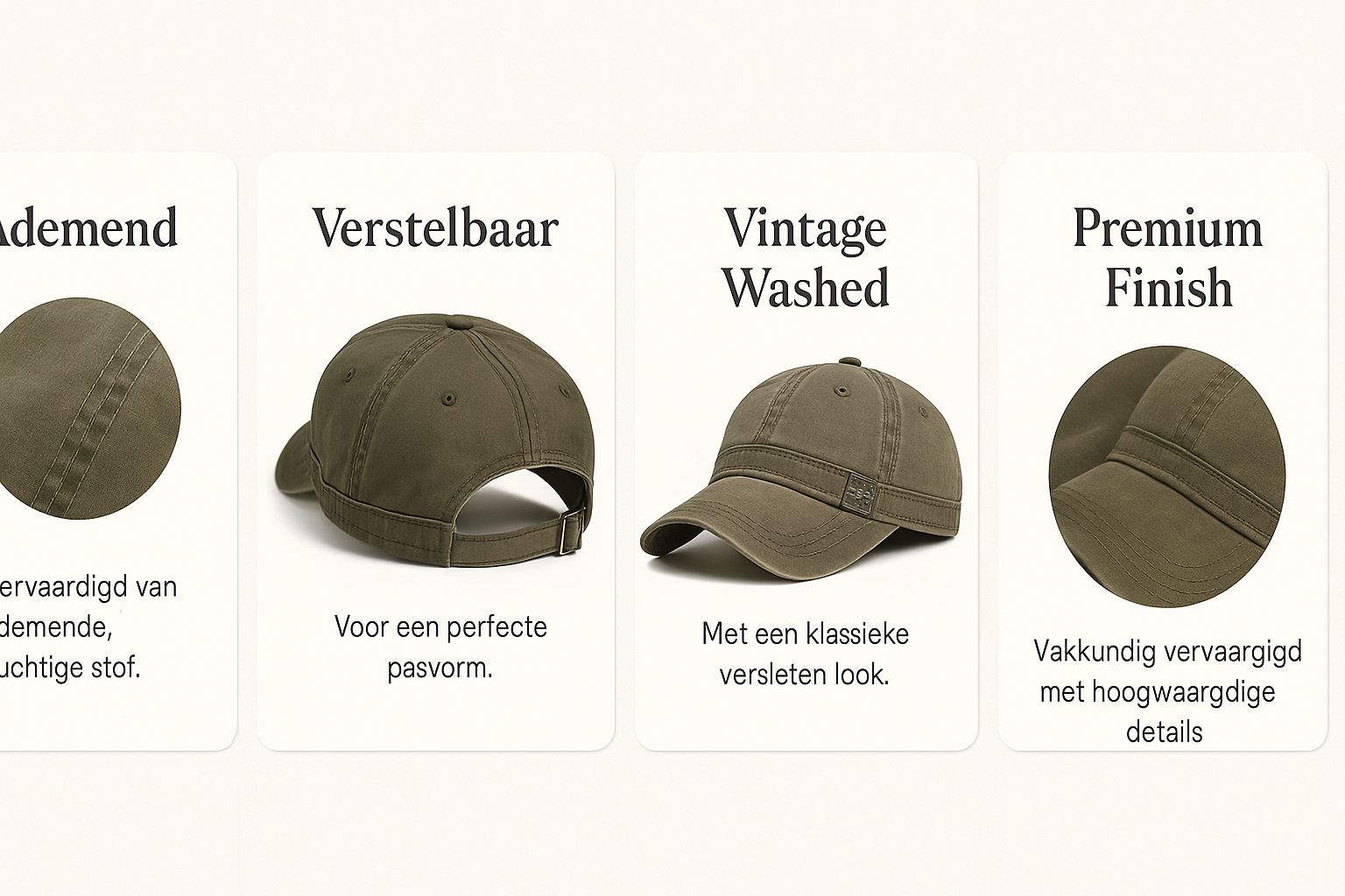 “Zit heerlijk, ziet er luxe uit en past bij al mijn outfits. De vintage look is precies goed. Deze cap voelt gewoon high-end.” – Jasper, Haarlem