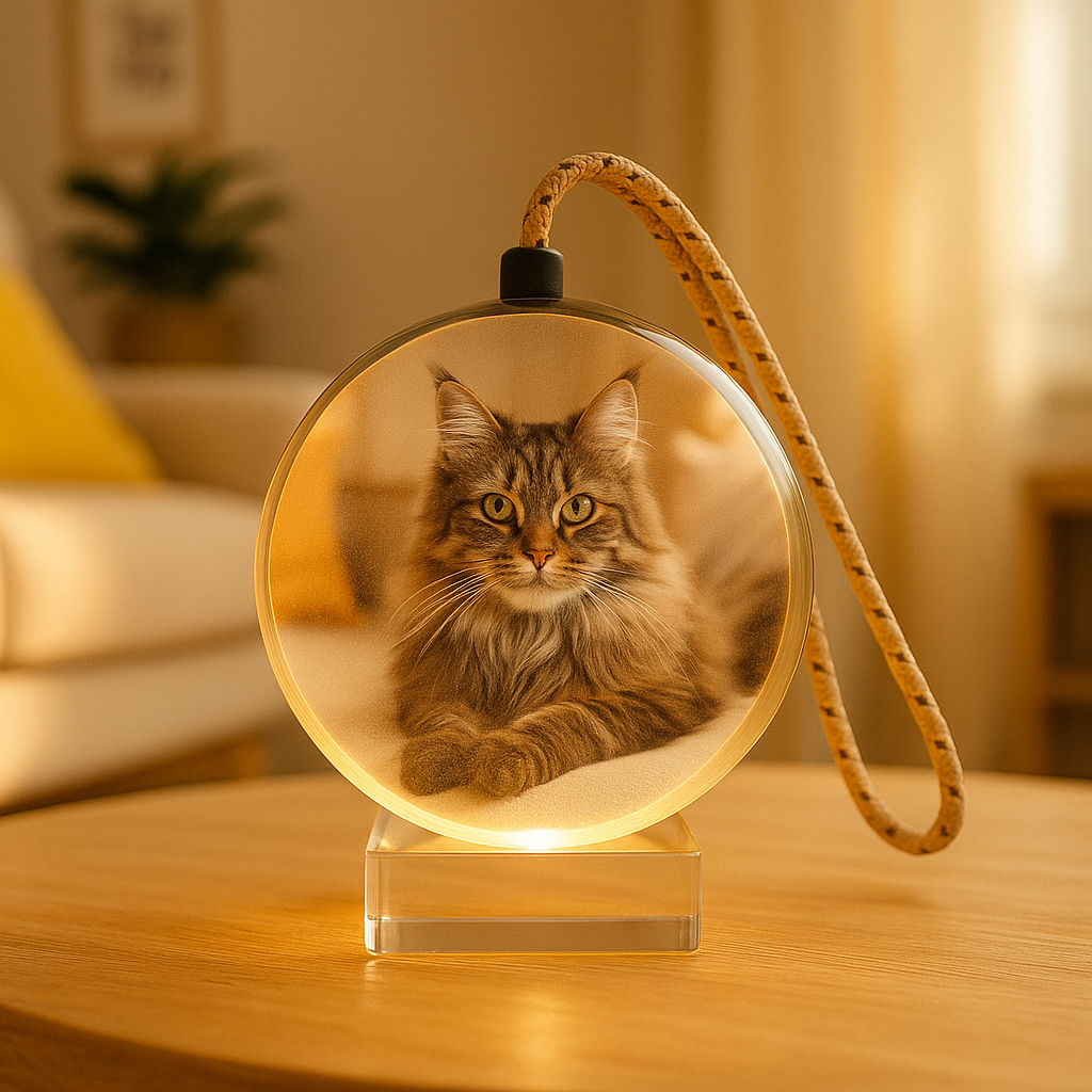 Een modern designobject dat herinneringen niet alleen toont, maar laat stralen.